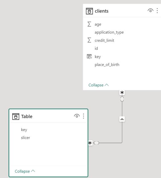 UNION(SELECTCOLUMNS(clients,"slicer",clients[application_type],"key",clients[key]),
