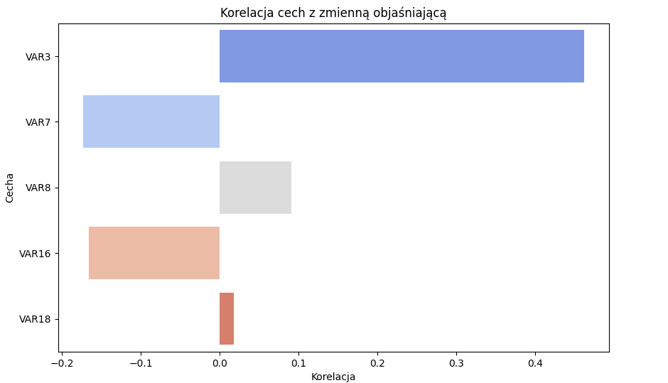 plt.title('Korelacja cech z zmienną objaśniającą')