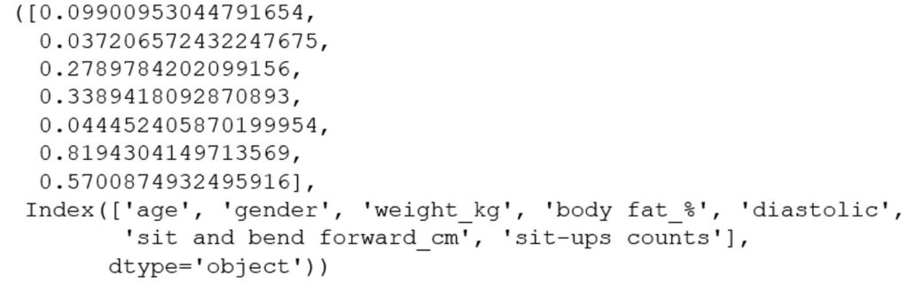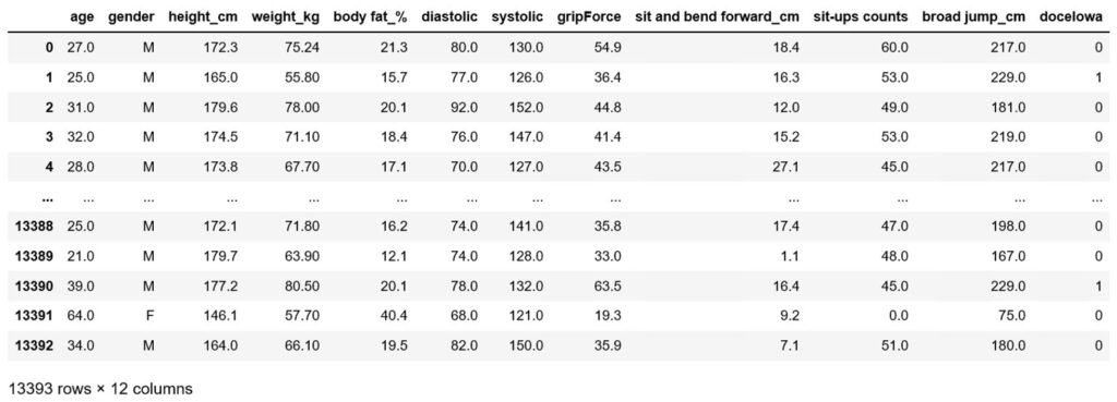 Zmienne poniżej 0,05 przyjmuje się za szczególnie słabe, a powyżej 0,7 za nadmiernie wysokie, zatem z modelu usuwamy zmienne „gender”, „diastolic”, „sit and bend forward_cm”.