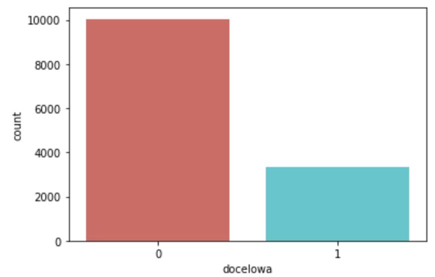Zmienna zawiera więcej wartości negatywnych, zatem konieczne będzie zbalansowanie danych na późniejszym etapie modelowania.