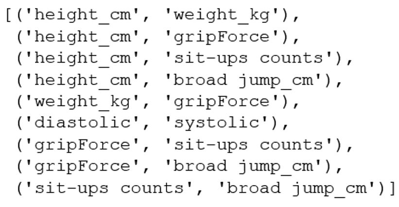 high_corr_var=[(corr.columns[x],corr.columns[y]) for x,y in zip(*high_corr_var) if x!=y and x<y]