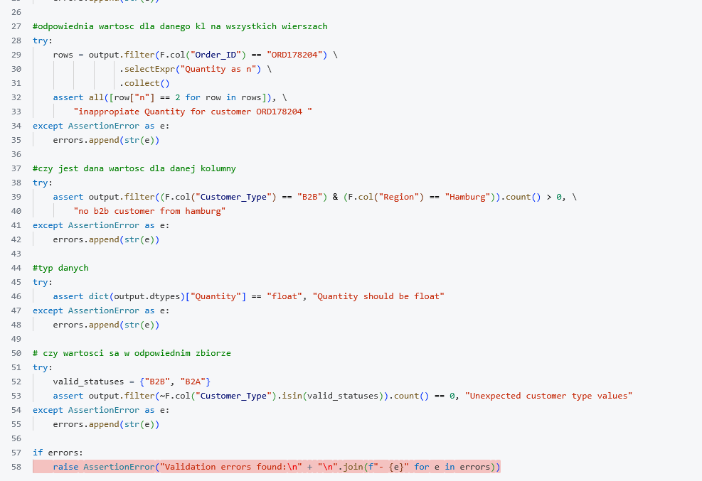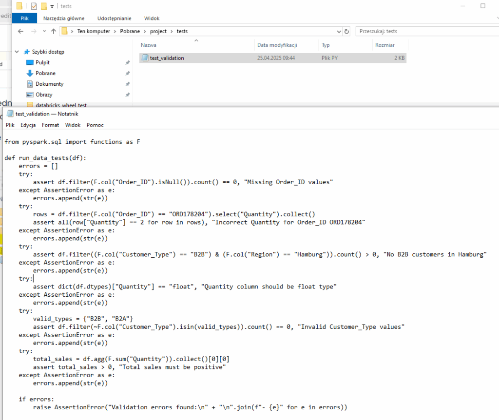 Co do naszego projektu, to testy jednostkowe najlepiej jednak wykonywać przed wrzuceniem na joba. W tym celu tworzymy folder tests z kodem do testów, który uruchamiamy lokalnie np. biblioteką pytest.