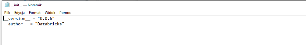 Dodajemy także plik __init.py__, w którym dodajemy metadane jak autor czy wersja naszego programu: