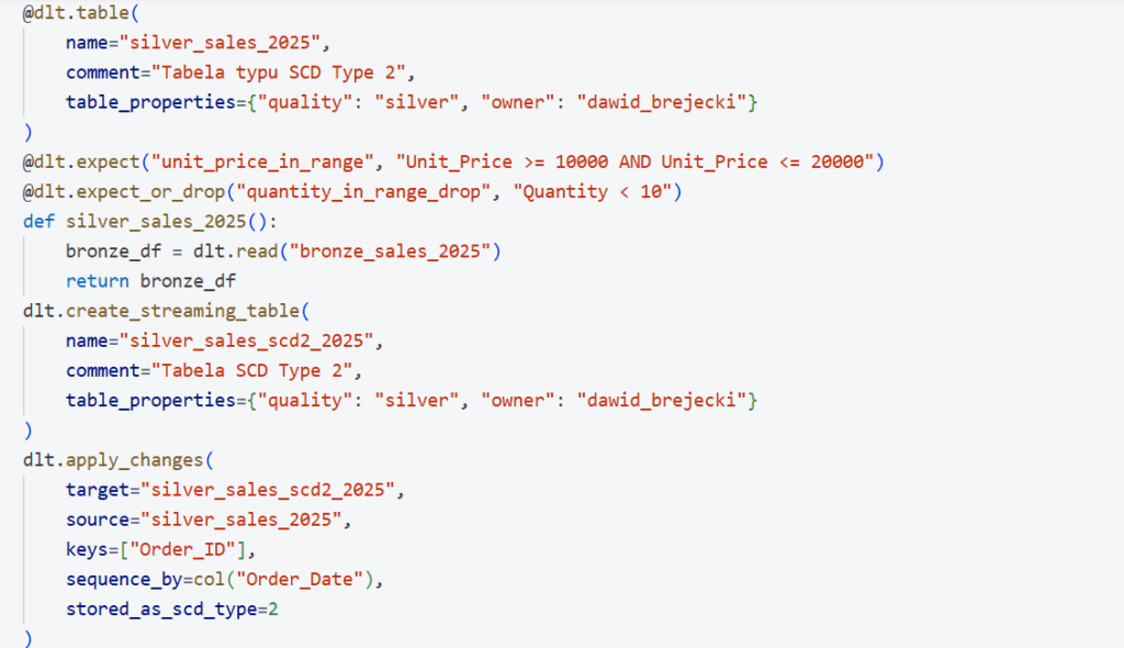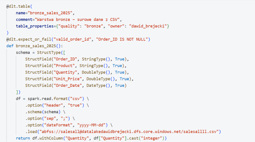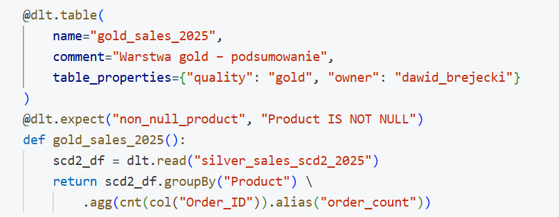 Siłą Delta Live Tables są dekoratory zwiększające wysokopoziomowość kodu.
