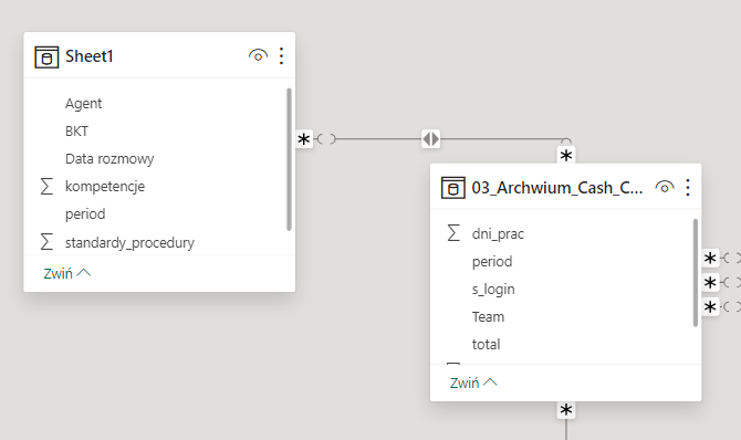 RLS-a używamy aby ograniczyć wiersze danych, które klient widzi w raporcie. Załóżmy, że mamy model, w którym chcemy ograniczyć widoczność Agentów z tabeli Sheet1: