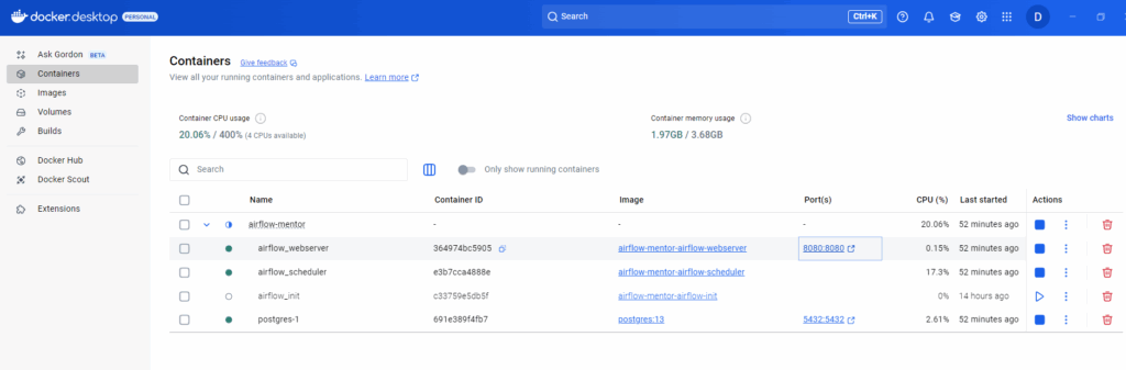 Po utworzeniu pokażą nam się w aplikacji Docker-Desktop: